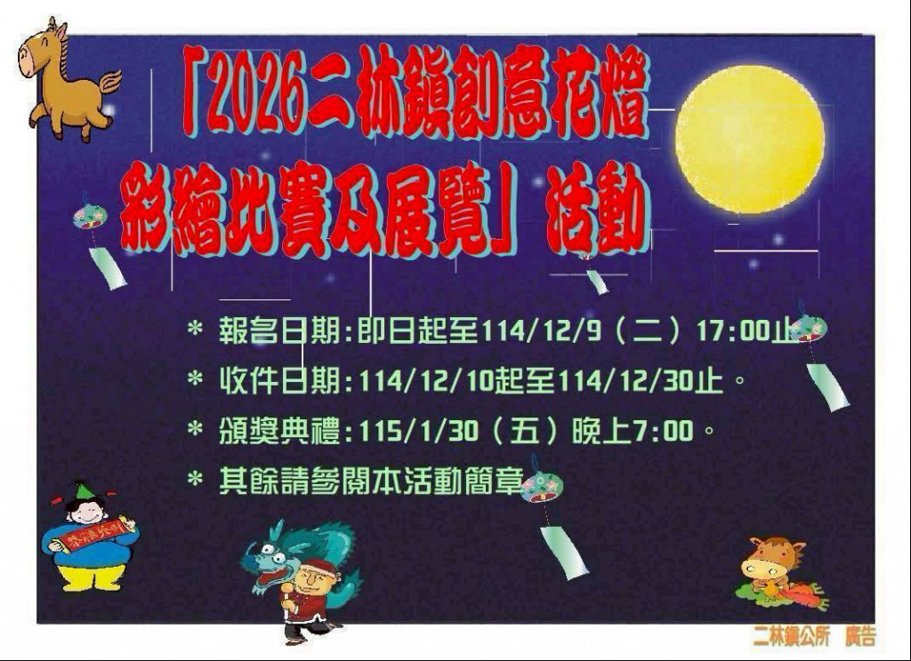 2026二林鎮創意花燈彩繪比賽,恭喜以下得獎學生